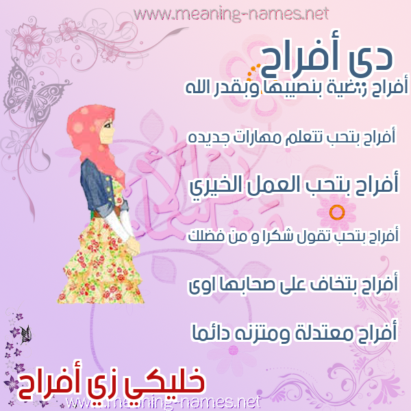 معنى اسم أفراح في قاموس المعاني و الأسماء