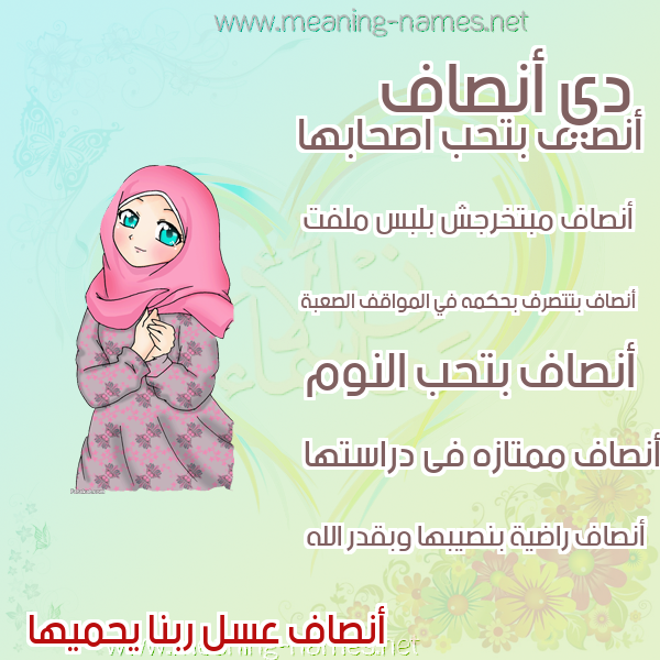 ما معنى اسمي أنصاف ؟ Hkwht ? what the meaning of ANSAF معاني كلمة أنصاف قاموس الأسماء و المعاني و الكلمات .