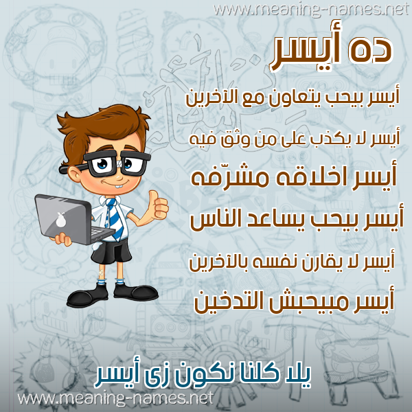 ما معنى اسمي أيسر ؟ Hdsv ? what the meaning of Aisr معاني كلمة أيسر قاموس الأسماء و المعاني و الكلمات .