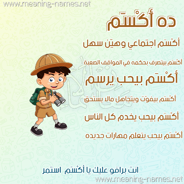 معنى اسم أَكْسَم في قاموس المعاني و الأسماء