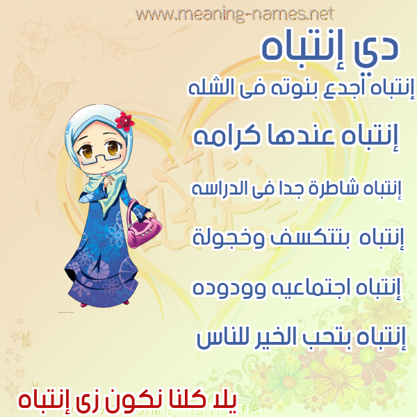 معنى اسم إنتباه في قاموس المعاني و الأسماء