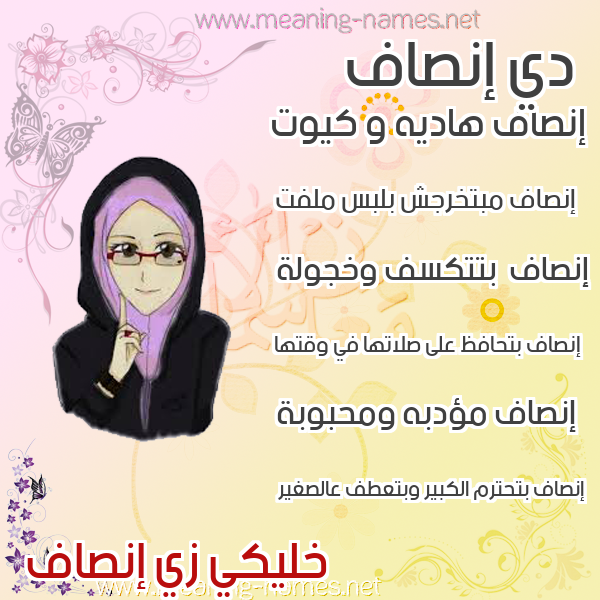 ما معنى اسمي إنصاف ؟ Ykwht ? what the meaning of ENSAF معاني كلمة إنصاف قاموس الأسماء و المعاني و الكلمات .