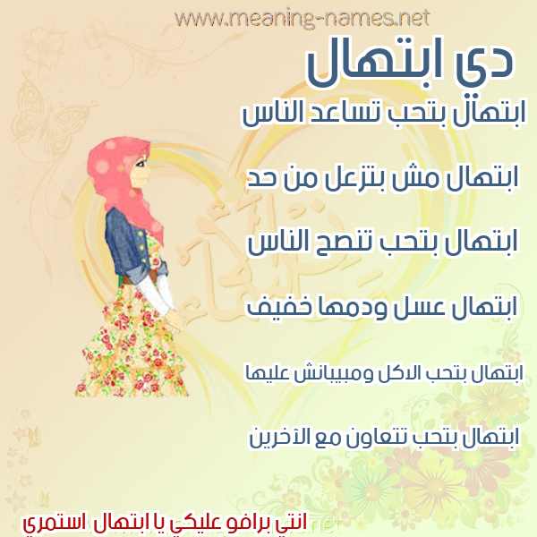 معنى اسم ابتهال في قاموس المعاني و الأسماء