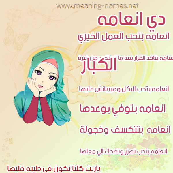 ما معنى اسمي انعامه ؟ hkuhli ? what the meaning of ANAAMH معاني كلمة انعامه قاموس الأسماء و المعاني و الكلمات .