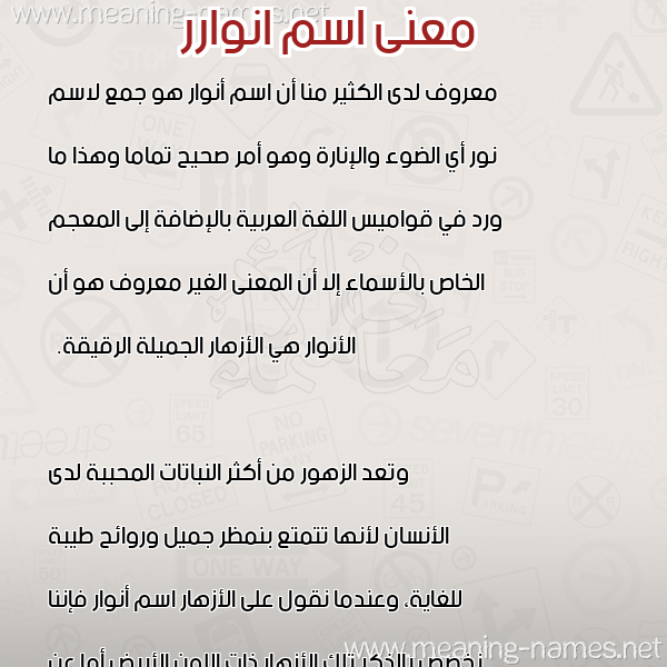 معنى اسم انوارر في قاموس المعاني و الأسماء