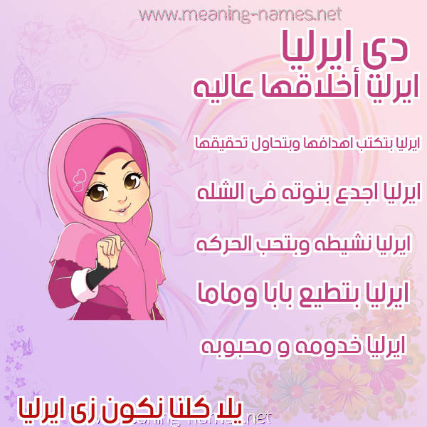 ما معنى اسمي ايرليا ؟ hdvgdh ? what the meaning of Erlea معاني كلمة ايرليا قاموس الأسماء و المعاني و الكلمات .