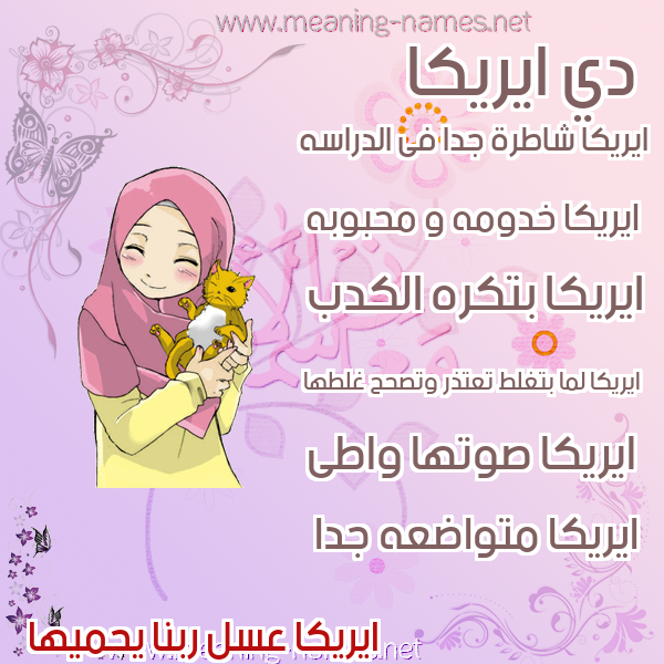 ما معنى اسمي ايريكا ؟ hdvd;h ? what the meaning of Erica معاني كلمة ايريكا قاموس الأسماء و المعاني و الكلمات .
