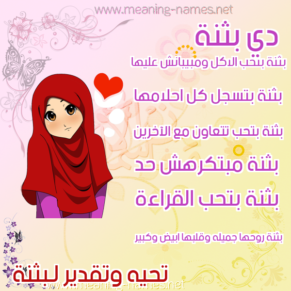ما معنى اسمي بثنة ؟ fekm ? what the meaning of Bthnh معاني كلمة بثنة قاموس الأسماء و المعاني و الكلمات .