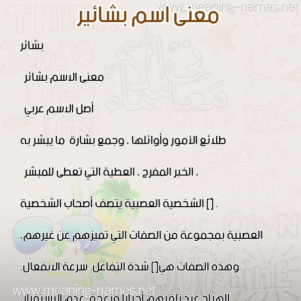 معنى اسم بشائير في قاموس المعاني و الأسماء