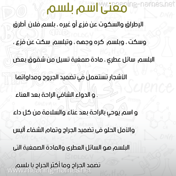 ما معنى اسمي بلسم ؟ fgsl ? what the meaning of Blsm معاني كلمة بلسم قاموس الأسماء و المعاني و الكلمات .