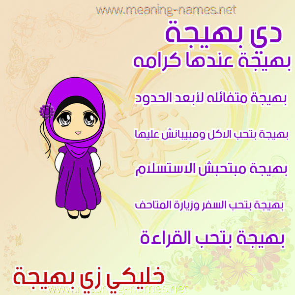 ما معنى اسمي بهيجة ؟ fid[m ? what the meaning of Bhyjh معاني كلمة بهيجة قاموس الأسماء و المعاني و الكلمات .