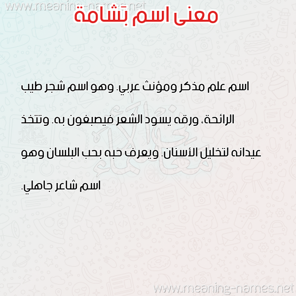 معنى اسم بَشامة في قاموس المعاني و الأسماء