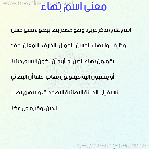 ما معنى اسمي بَهاء ؟ fQihx ? what the meaning of Bahaa معاني كلمة بَهاء قاموس الأسماء و المعاني و الكلمات .