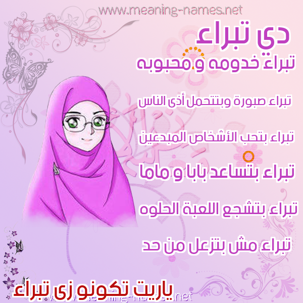 معنى اسم تبراء في قاموس المعاني و الأسماء
