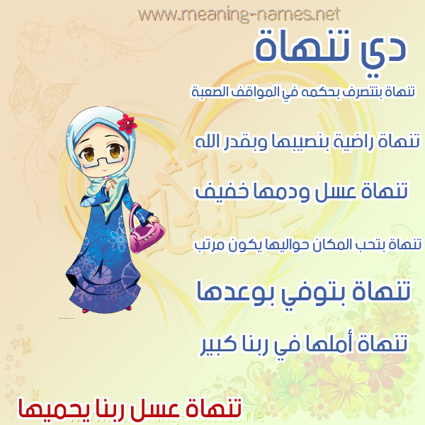 ما معنى اسمي تنهاة ؟ jkihm ? what the meaning of Tnhah معاني كلمة تنهاة قاموس الأسماء و المعاني و الكلمات .