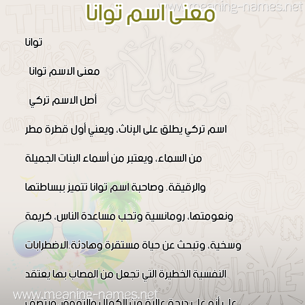 ما معنى اسمي توانا ؟ j,hkh ? what the meaning of Tuana معاني كلمة توانا قاموس الأسماء و المعاني و الكلمات .