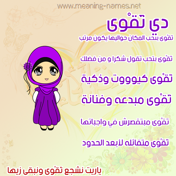 ما معنى اسمي تَقْوى ؟ jQrX,n ? what the meaning of TAQOA معاني كلمة تَقْوى قاموس الأسماء و المعاني و الكلمات .