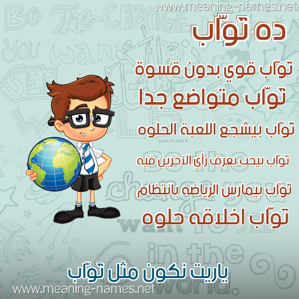 ما معنى اسمي تَوّاب ؟ jQ,~hf ? what the meaning of TAOAB معاني كلمة تَوّاب قاموس الأسماء و المعاني و الكلمات .