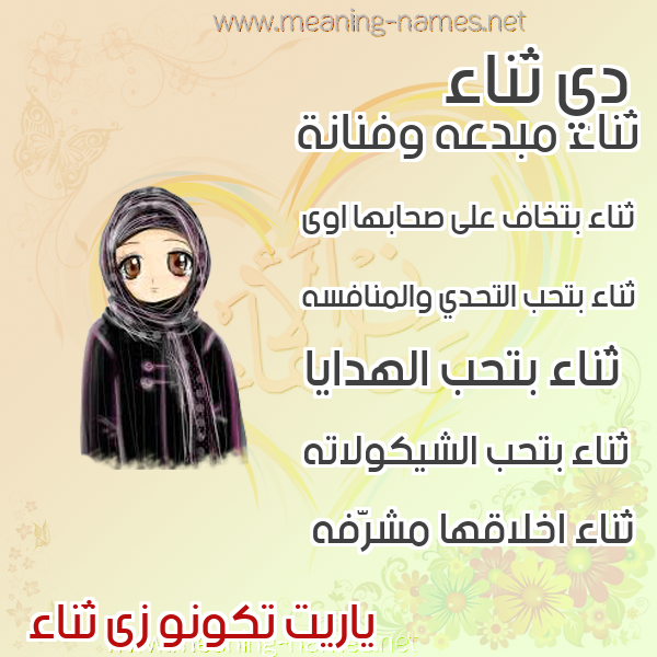 معنى اسم ثَناء في قاموس المعاني و الأسماء