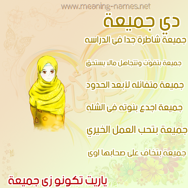 ما معنى اسمي جميعة ؟ [ldum ? what the meaning of Jmy"h معاني كلمة جميعة قاموس الأسماء و المعاني و الكلمات .