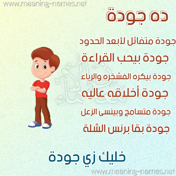 ما معنى اسمي جودة ؟ [,]m ? what the meaning of Goda معاني كلمة جودة قاموس الأسماء و المعاني و الكلمات .
