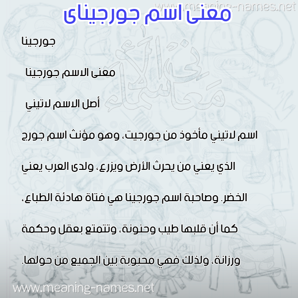 ما معنى اسمي جورجيناى ؟ [,v[dkhn ? what the meaning of georginai معاني كلمة جورجيناى قاموس الأسماء و المعاني و الكلمات .