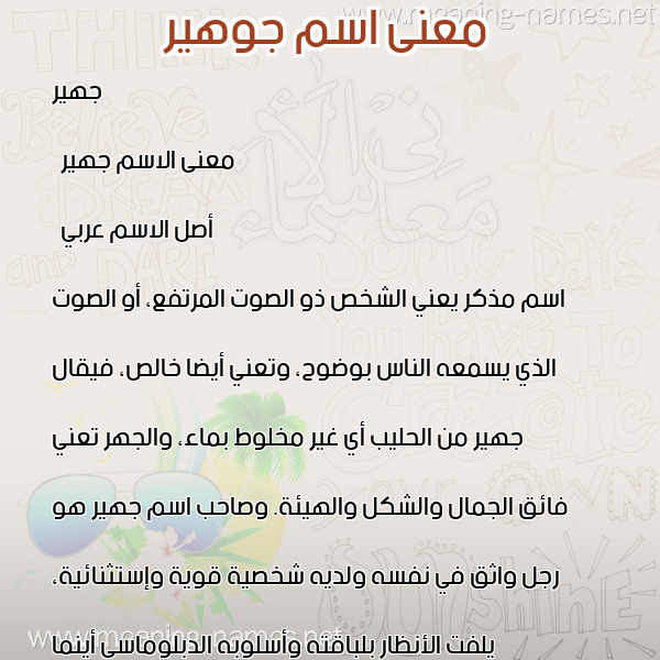 ما معنى اسمي جوهير ؟ [,idv ? what the meaning of Joheer معاني كلمة جوهير قاموس الأسماء و المعاني و الكلمات .