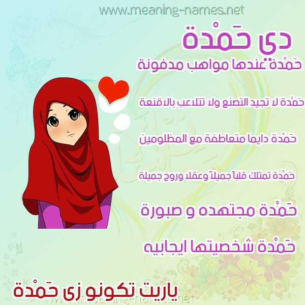 ما معنى اسمي حَمْدة ؟ pQlX]m ? what the meaning of HAMDH معاني كلمة حَمْدة قاموس الأسماء و المعاني و الكلمات .