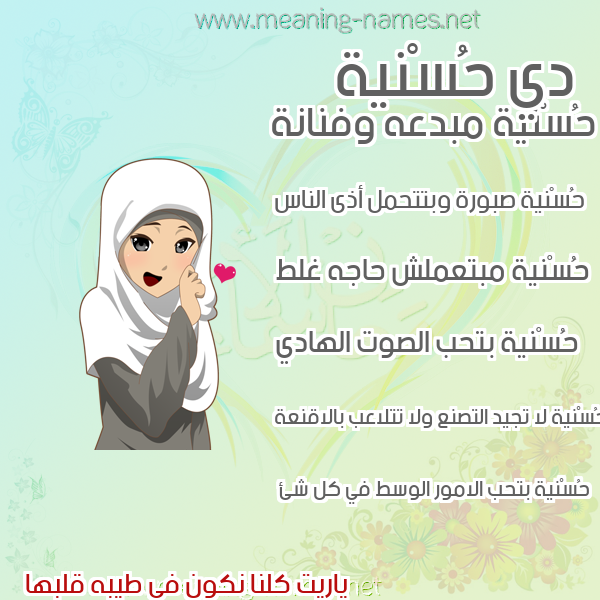 معنى اسم حُسْنية في قاموس المعاني و الأسماء