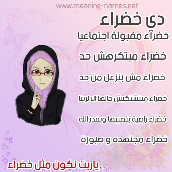 ما معنى اسمي خضراء ؟ oqvhx ? what the meaning of Khdra'a معاني كلمة خضراء قاموس الأسماء و المعاني و الكلمات .