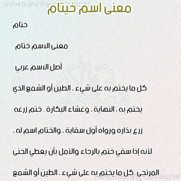 ما معنى اسمي خيتام ؟ odjhl ? what the meaning of Khitam معاني كلمة خيتام قاموس الأسماء و المعاني و الكلمات .