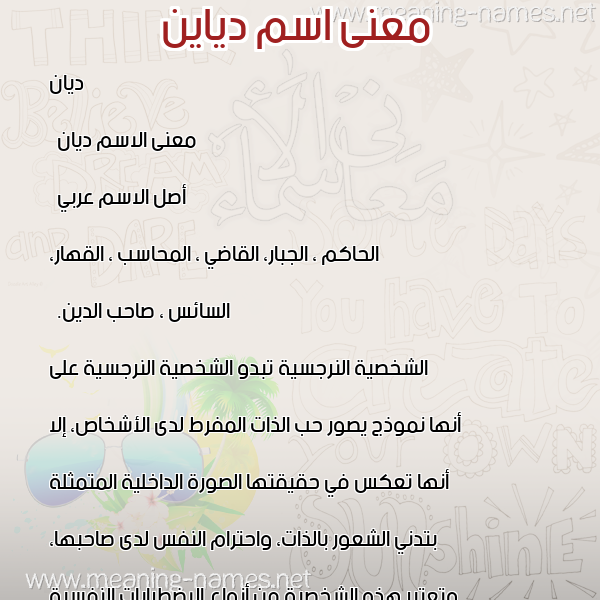 معنى اسم دياين في قاموس المعاني و الأسماء