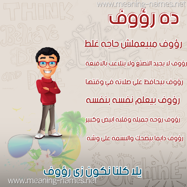 ما معنى اسمي رؤوف ؟ vc,t ? what the meaning of Raoof معاني كلمة رؤوف قاموس الأسماء و المعاني و الكلمات .