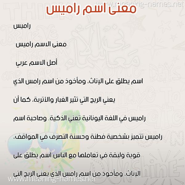 ما معنى اسمي راميس ؟ vhlds ? what the meaning of Ramis معاني كلمة راميس قاموس الأسماء و المعاني و الكلمات .