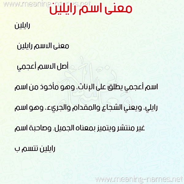 معنى اسم رايلين في قاموس المعاني و الأسماء