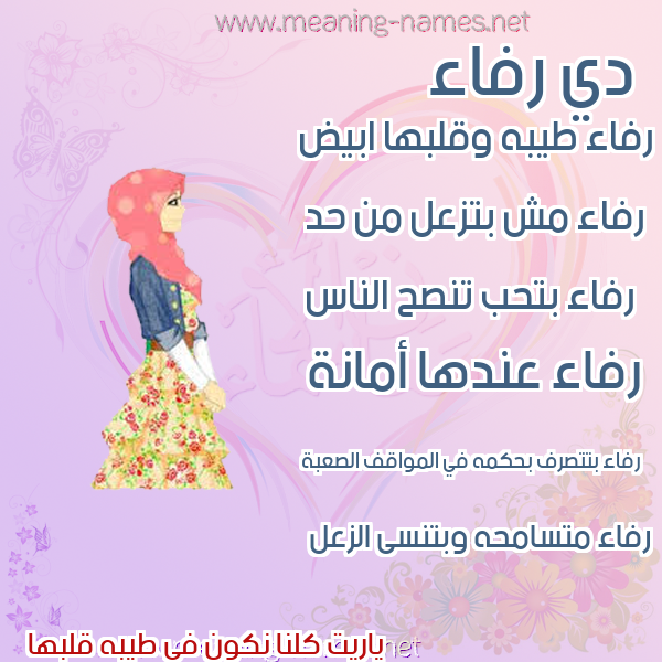 ما معنى اسمي رفاء ؟ vthx ? what the meaning of Rfaa معاني كلمة رفاء قاموس الأسماء و المعاني و الكلمات .
