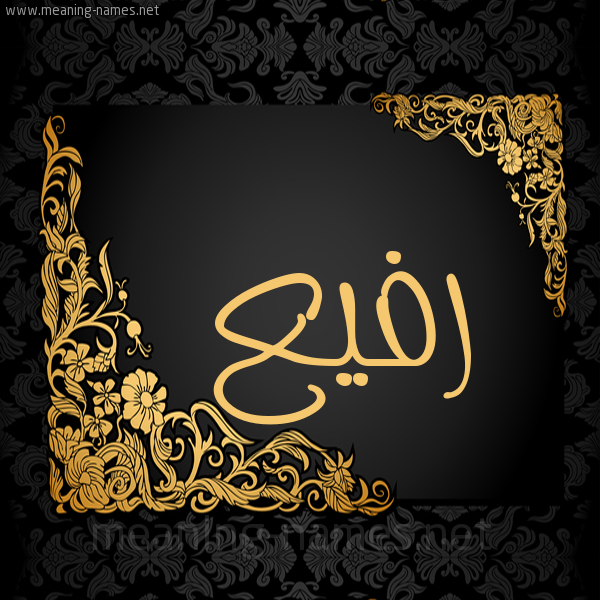 ( رَفيْعَة ) : العالي القدر والشأن ، الشريف ، والمرتفع .و اسم علم مذكر عربي، على صيغة الصفة المشبهة،