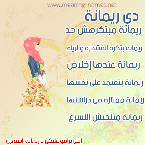 ما معنى اسمي ريمانة ؟ vdlhkm ? what the meaning of Rimana معاني كلمة ريمانة قاموس الأسماء و المعاني و الكلمات .