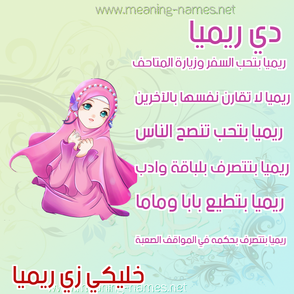 ما معنى اسمي ريميا ؟ vdldh ? what the meaning of Remia معاني كلمة ريميا قاموس الأسماء و المعاني و الكلمات .