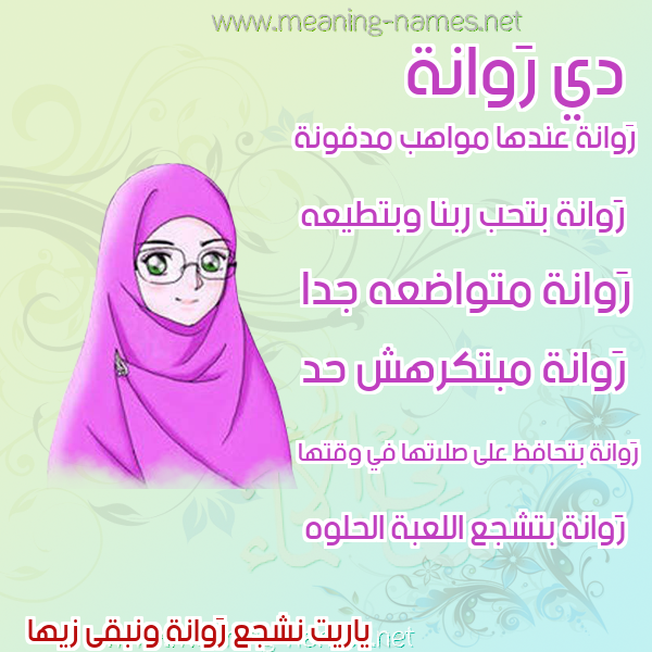 ما معنى اسمي رَوانة ؟ vQ,hkm ? what the meaning of RAOANH معاني كلمة رَوانة قاموس الأسماء و المعاني و الكلمات .