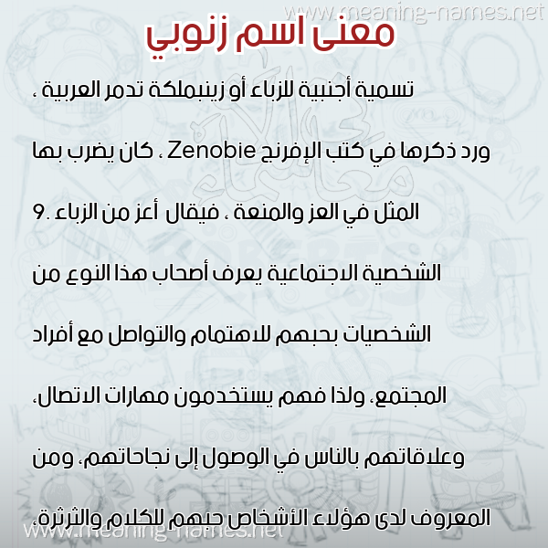 معنى اسم زنوبي في قاموس المعاني و الأسماء