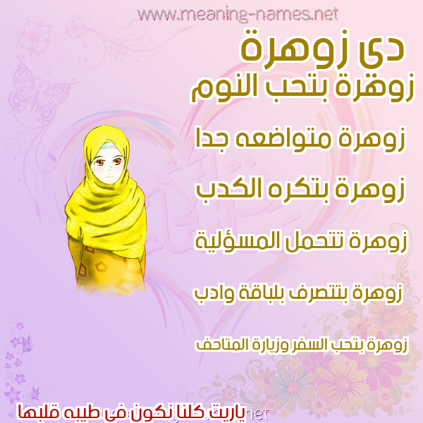 معنى اسم زوهرة في قاموس المعاني و الأسماء