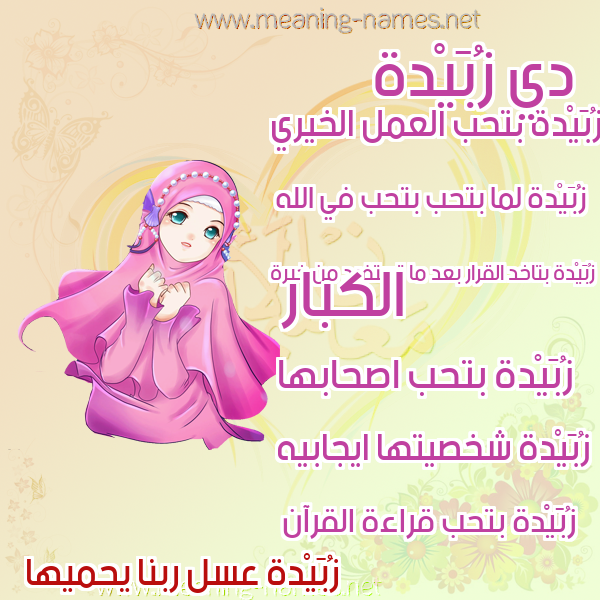 معنى اسم زُبَيْدة في قاموس المعاني و الأسماء