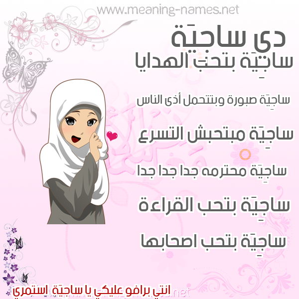 ما معنى اسمي ساجِيَة ؟ sh[AdQm ? what the meaning of SAGEIAH معاني كلمة ساجِيَة قاموس الأسماء و المعاني و الكلمات .