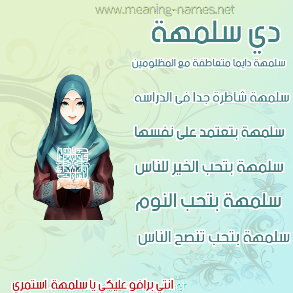 ما معنى اسمي سلمهة ؟ sglim ? what the meaning of Salamah معاني كلمة سلمهة قاموس الأسماء و المعاني و الكلمات .