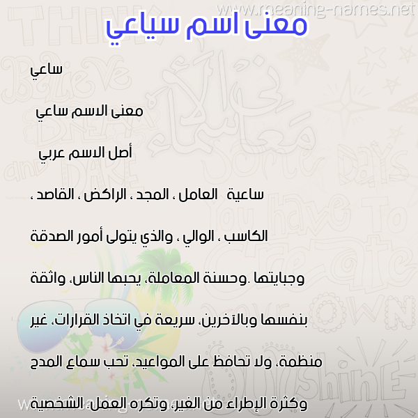 ما معنى اسمي سياعي ؟ sdhud ? what the meaning of Saei معاني كلمة سياعي قاموس الأسماء و المعاني و الكلمات .