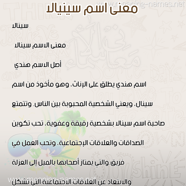 ما معنى اسمي سينيالا ؟ sdkdhgh ? what the meaning of Sinala معاني كلمة سينيالا قاموس الأسماء و المعاني و الكلمات .