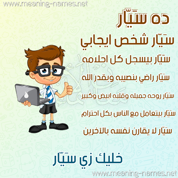 ما معنى اسمي سَيّار ؟ sQd~hv ? what the meaning of SAIAR معاني كلمة سَيّار قاموس الأسماء و المعاني و الكلمات .