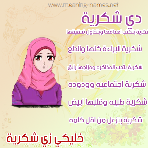 معنى اسم شكرية في قاموس المعاني و الأسماء