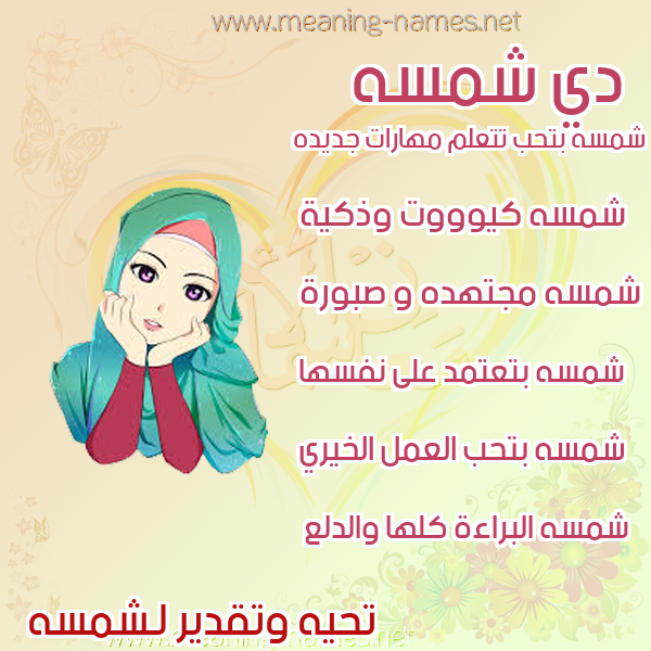 معنى اسم شمسه في قاموس المعاني و الأسماء